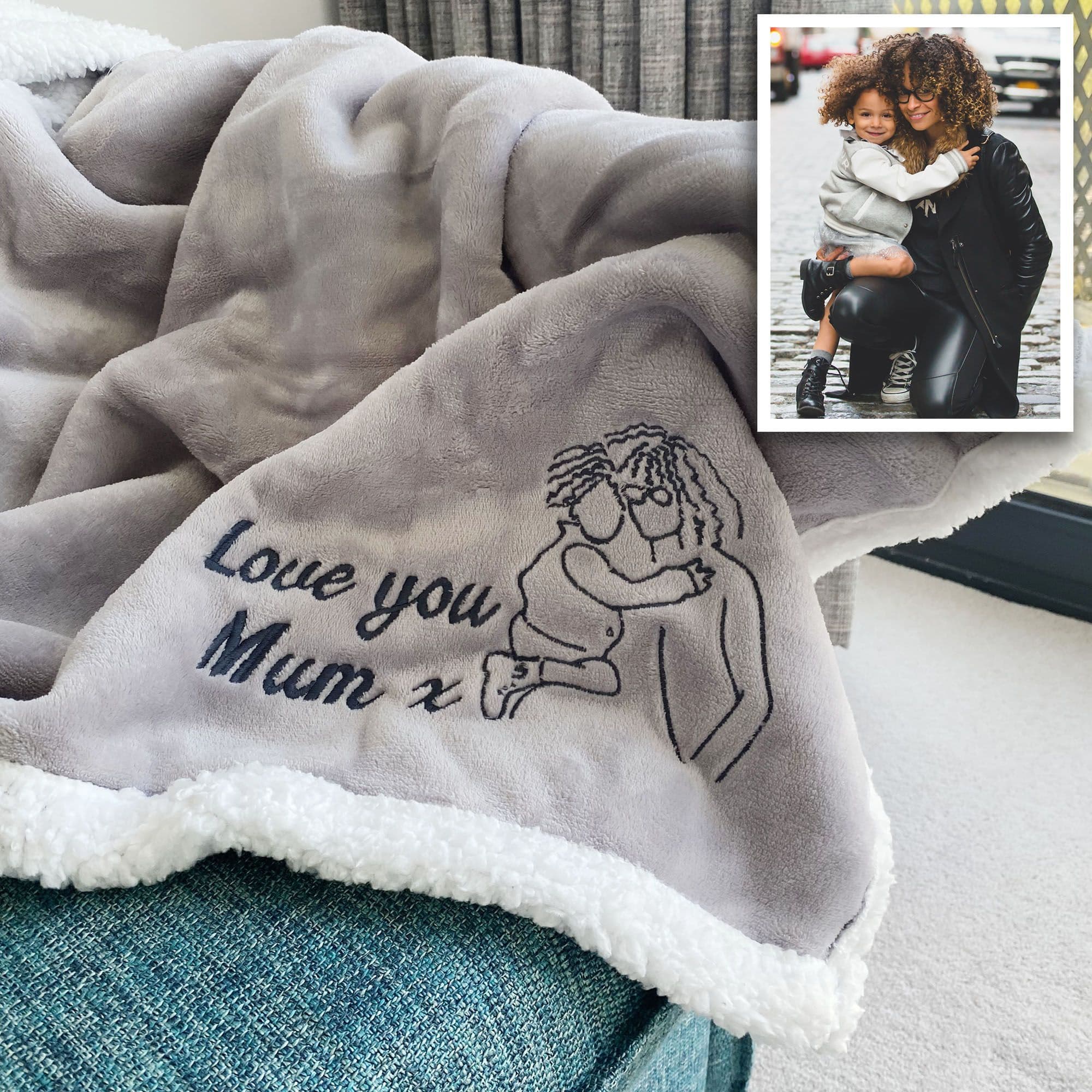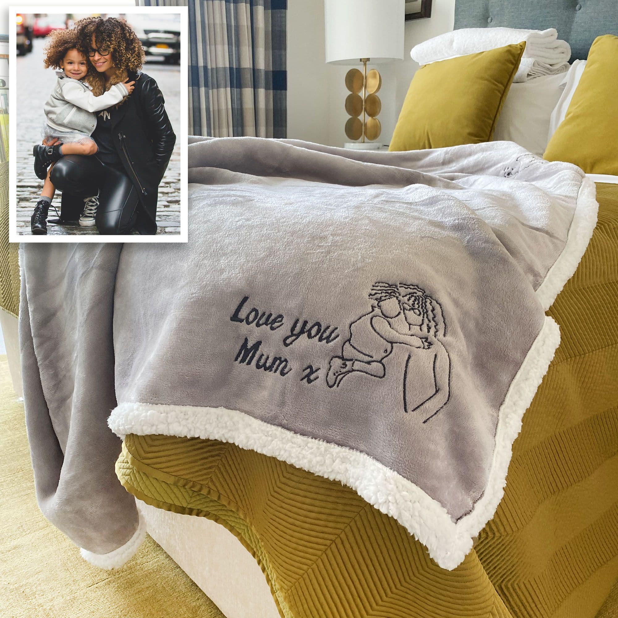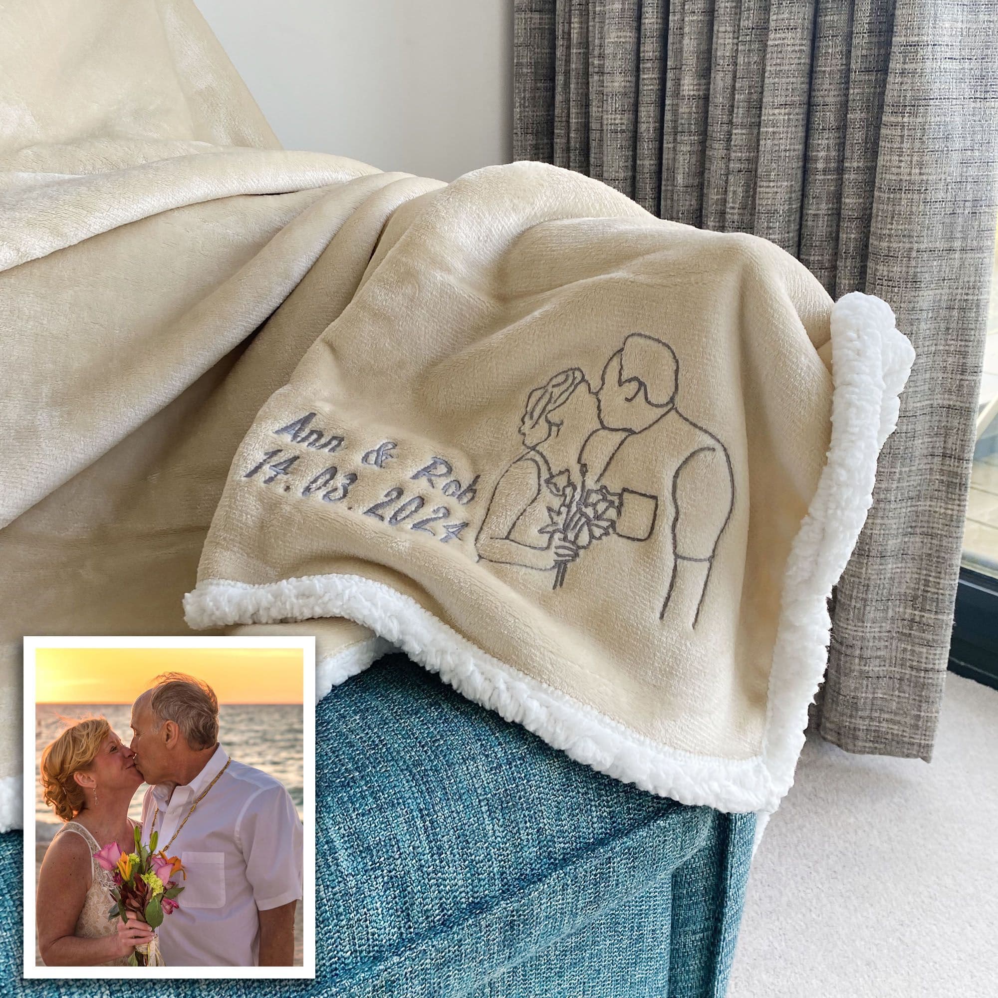 Personalised Embroidered Photo Neutral Sherpa Blanket